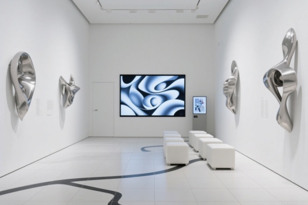當藝術(shù)掙脫想象的繭房,以空間為畫布肆意生長,便有了這些令人沉醉的展廳現(xiàn)場。從冷峻金屬線條編織的現(xiàn)代夢境,到暖黃墻面暈染的田園詩意;從多彩光影嬉戲的時尚展臺,到經(jīng)典配色里迸發(fā)的藝術(shù)張力 —— 四個風(fēng)格迥異的展廳,正以各自獨特的「語言」,訴說藝術(shù)的無限可能。準備好跟隨我們的鏡頭,推開這扇通往藝術(shù)奇旅的門,沉浸式捕捉每一寸靈感閃光 ,一起解鎖展廳里的藝術(shù)密碼。